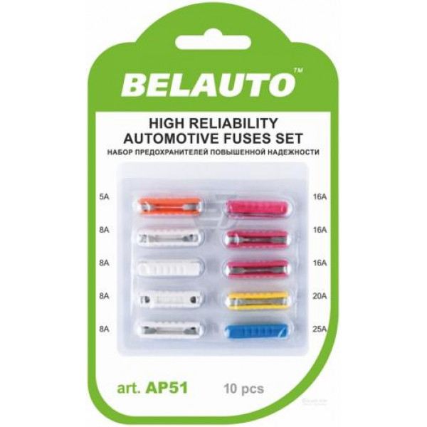 Запобіжники циліндричні від 5-25А (10шт) "Білавто" AP-51