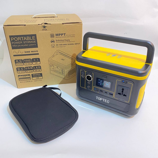 Особливості зарядної станції Toptec DK600 600W 568Wh забезпечує стабільну роботу приладів потужністю до 600W має досить тривалу автономну роботу завдяки батареям ємністю 568Wh, що приблизно дорівнює 153600mAh сумісність із сонячними панелями підтримка бездротової зарядки сучасний дизайн та компактні розміри Зарядна станція Toptec DK600 600W 568Wh може використовуватись: як альтернативне джерело живлення в парі з сонячною панеллю як аварійне джерело живлення для гаджетів та малопотужної побутової чи офісної техніки під час стихійних лих та інших відключень електроенергії як джерело живлення для кемпінгу, відпочинку на природі, подорожі на автомобілі і т.д. виїзної роботи приладів, що потребують електроенергії: фото- або відеозйомка, інтерв'ю, презентація і т.д. (Ноутбук, мережеве обладнання, комп'ютерна техніка, проектор, світло, спалахи, аудіомікшер, ...) Станція може використовуватися для заряджання гаджетів та ноутбука або включення малопотужних побутових приладів із потужністю до 600Вт. Важливо враховувати, що Toptec DK600 600W 568Wh не призначена для роботи побутової техніки з вбудованими електродвигунами (холодильник, верстати, електроінструменти, котли), оскільки вони в момент запуску короткочасно (кілька секунд) споживають у рази більше їхньої номінальної потужності (так званий пусковий струм) . При перевищенні потужності станція буде відключена - спрацює захист від перенавантаження. Станція оснащена якісними та надійними Li-Ion-акумуляторами, що забезпечує довгий термін служби батарей. Toptec DK600 600W 568Wh підтримує три способи заряджання: заряджання від мережі змінного струму 220В, заряджання від сонячної панелі, заряджання від автомобільної розетки. Зовнішній блок живлення 100W дозволяє зарядити станцію від мережі за 7-7,5 годин. Для підключення до станції передбачено декілька різних вихідних портів: 1 х розетка змінного струму 220В 50Гц 1 х USB-A 1 х USB QC 18W 1 х Type-C 65W 1 х автомобільна розетка "прикурювач" DC 12V 2 х DC6330 12V 1 х Wireles charging (бездротова зарядка) Характеристики: Сумісність: Універсальна Тип акумулятора: Li-Ion Ємність: 568Wh Потужність: 600W Термін служби: 800+ циклів Розмір: 275x200x170 ммВ Вага: 4.9 кг Ручка для перенесення: є Способи та час заряджання: Адаптер змінного струму: близько 7-7,5 годин Сонячна панель 100Вт: близько 9 годин Автомобільна розетка: близько 10 годин Комплектація: Зарядна станція: 1 шт Адаптер змінного струму: 1 шт Посібник користувача
