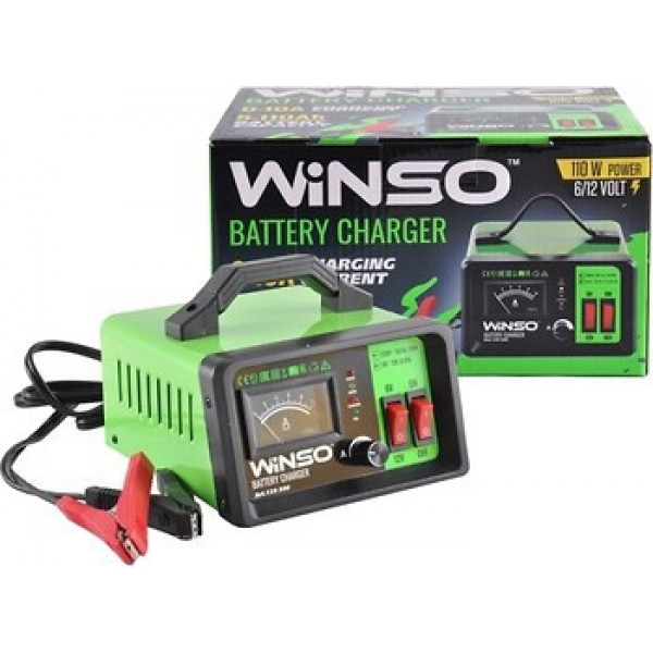 Опис: Зарядний пристрій автомобільних акумуляторів Winso 139300 підійде для відновлення ємності свинцево-кислотних акумуляторів з номінальною напругою 6 вольт і 12 вольт. На функціональній панелі пристрою розташований перемикач режимів роботи, панель світлодіодних індикаторів, а також ручка плавного регулювання сили струму на виводах. Металевий корпус має вентиляційні отвори для своєчасного охолодження електричних схем. Плюсовий та мінусовий проводи підключення мають червоний та чорний колір відповідно, що мінімізує можливості підключення з неправильною полярністю. Клемні затискачі виконані у вигляді крокодилів із ізоляцією на ручках для безпечного монтажу. Характеристики: Вхідна напруга: AC 230V/50Hz Вихідна напруга: DC 6V-12V Макс. струм підзарядки: 10А Довжина кабелю: ~ 1.5м Індикаторна шкала: +
